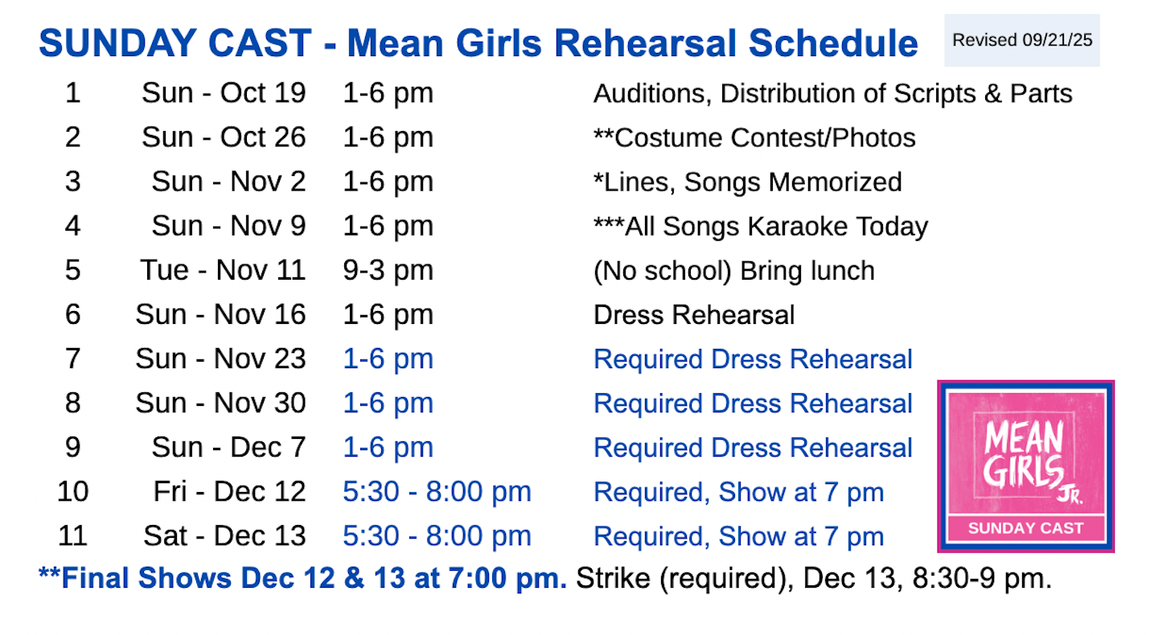 9am Mean Girls Jr. (Sunday Cast)