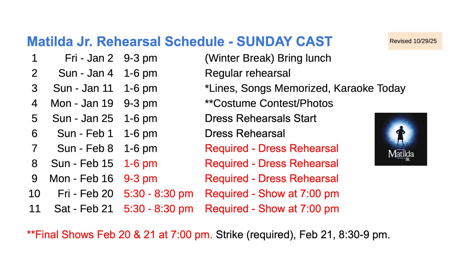 Now enrolling Sunday & Monday casts for Matilda Jr.